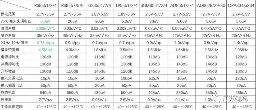 目前市面上常见的高精度零漂移运放有如下一些型号,参考表2:
